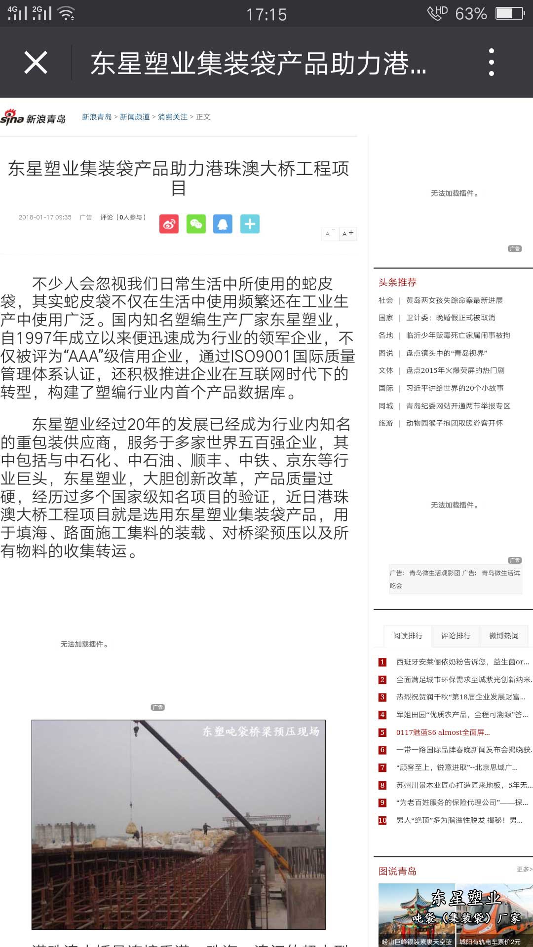 (多家媒体报道)东星塑业集装袋产品助力港珠澳大桥工程项目